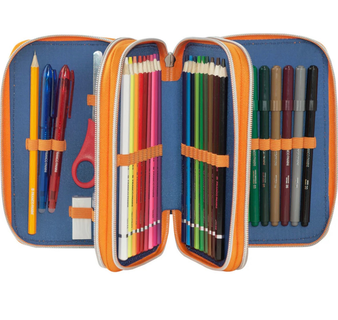 L'astuccio personalizzato Dragon Ball è distribuito con licenza originale da Franco Cosimo Panini Editore. Dispone di 3 scomparti e ti permetterà di organizzare e trasportare comodamente tutti i tuoi strumenti di scrittura e disegno per la scuola, per averli sempre a portata di mano. Grazie alle dimensioni di 20x13hx7 cm, questo astuccio è molto spazioso e include 18 pennarelli, 18 matite colorate mina 4.0, matita, gomma, penna cancellabile blu e rossa, righello, temperino 2 fori con serbatoio, forbici con punta arrotondata, squadra, 5 etichette adesive porta nome. Preparati ad esprimere la tua creatività in modo organizzato e divertente!