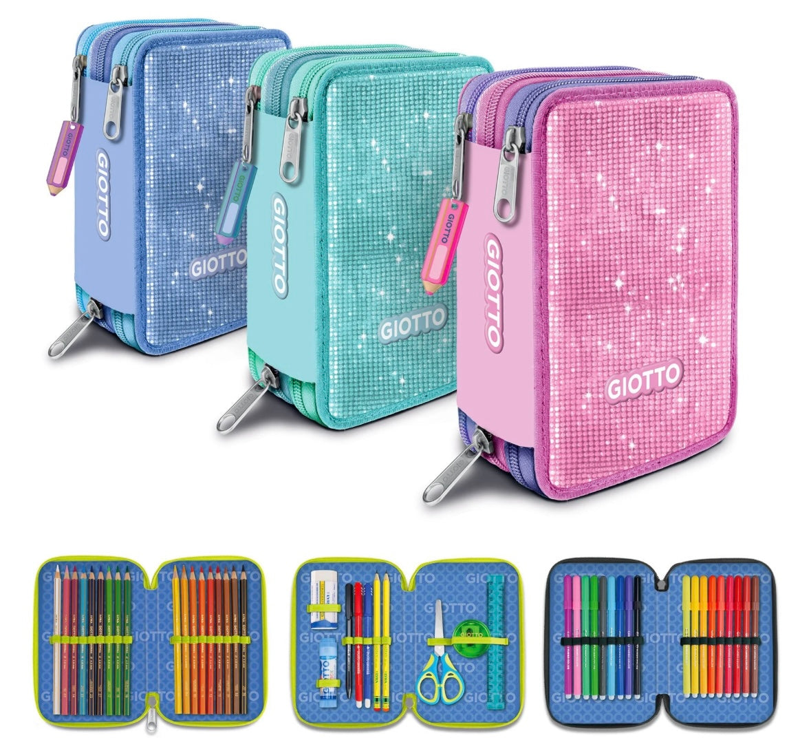 Astuccio a tre scomparti in poliestere impermeabile e con cerniere in metallo