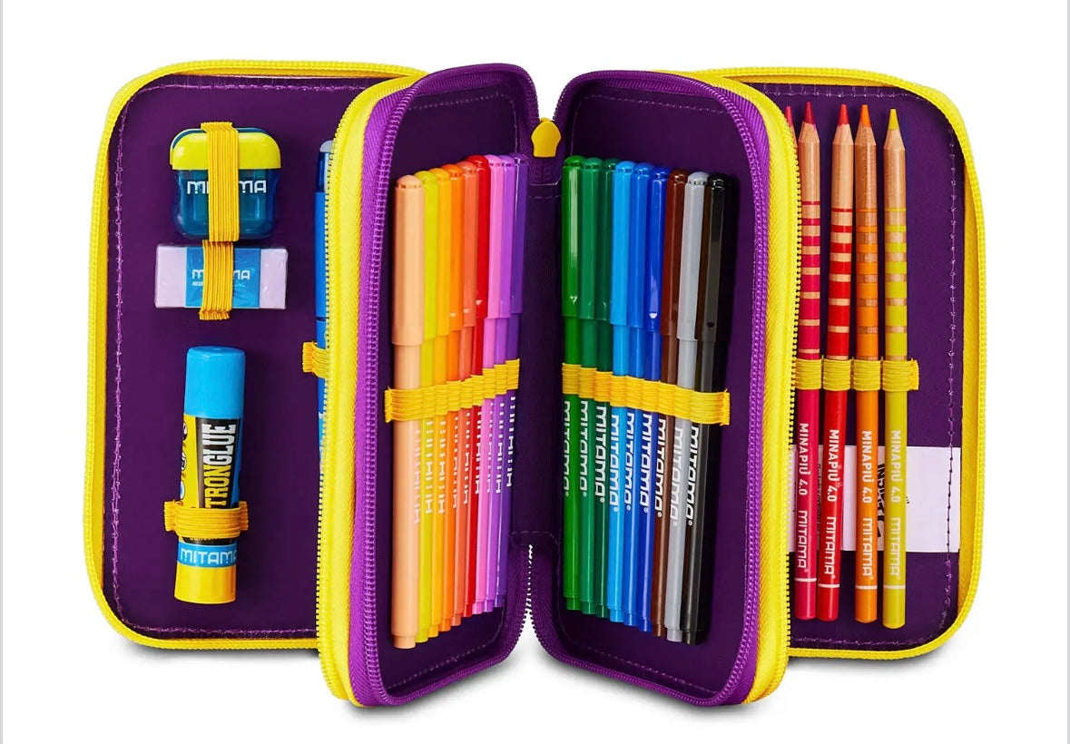 Include 44 accessori scolasticitra pastelli, pennarelli e forbici